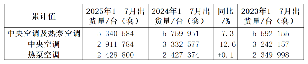 2025年1—7月,美国中央空调和热泵空调累计出货量比2024年